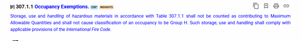 2024 IBC 307.1.1 and Table 307.1- Occupancy Exemptions and Hazardous Materials Exceptions